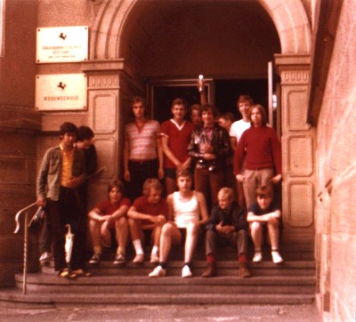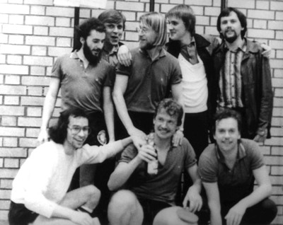 Die Gründungsmitglieder : Bernd Adler (o.Mitte), Gerd Raff (u. Mitte), Reinhard Egeler (u. rechts), sowie die Brüder Uli (o. rechts) und Jörg Vogel (u. links); es fehlt Josef Schneider