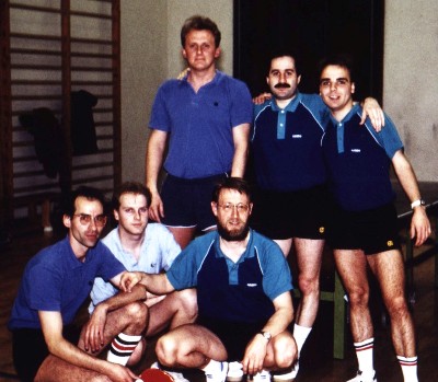 Mannschaftsaufstellung des TTC: Eberhard Ziegler, Werner Ströbele, Bernd König, Gerd Raff, Reinhard Egeler, Claus Schäffauer.
